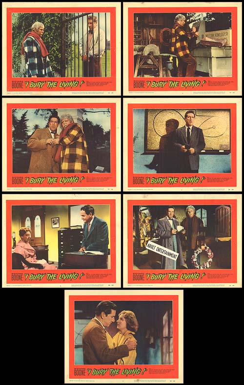 Thus opens the film entitled I Bury the Living about a man who believes he has the power over life and death. Robert Kraft, the man in question has just been elected as the new director of the cemetery committee. A new person is elected every year and this time, it is Robert’s turn. He meets the caretaker and inquires about the chart on the wall, to which he is told is a map of everyone’s plots. The black pins signify someone who has already passed away and the white ones indicate people who are still living but have purchased a plot for the future. Accidentally, Robert sticks in two black pins and the next day a young couple winds up dead. Robert feels responsible, but to test his theory, he sticks another black pin in the chart at random and that person ends up dead as well. And so it goes a number of times and Robert believes he has some sort of power over the fate of others. It gets to the point where he is nearly insane and thinks he can bring the dead back to life by using the white pins.