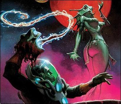 Matteo Scalera, recently of Secret Avengers fame, joins Remender on the journey and together they paint incredible portraits of science-fiction wonder for our dimensionauts to traverse. From a breathtakingly beautiful planet populated with sentient bipedal frogs and fish people to a world that is ensnared in a World War type scenario between Germans and the natives of an unexplored continent who are armed with superior weaponry and magic, everything just leaps off the page at you under Scalera’s pencils. The action is fast, furious and frenetic and Scalera gives it an energy that many artists are unable to do. His character work is fantastic, giving them all distinct looks from the children to future Grant to the various women that accompany them. It also helps to have a good colourist and Dean White who provides the painted art adds an extra layer of awesome to those pencils.