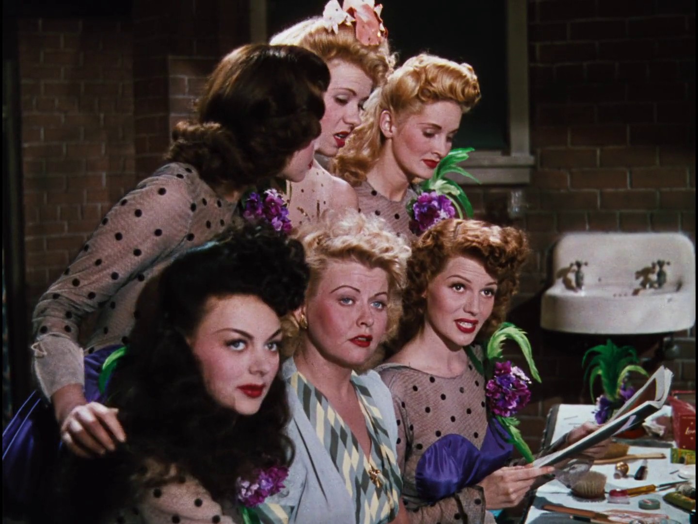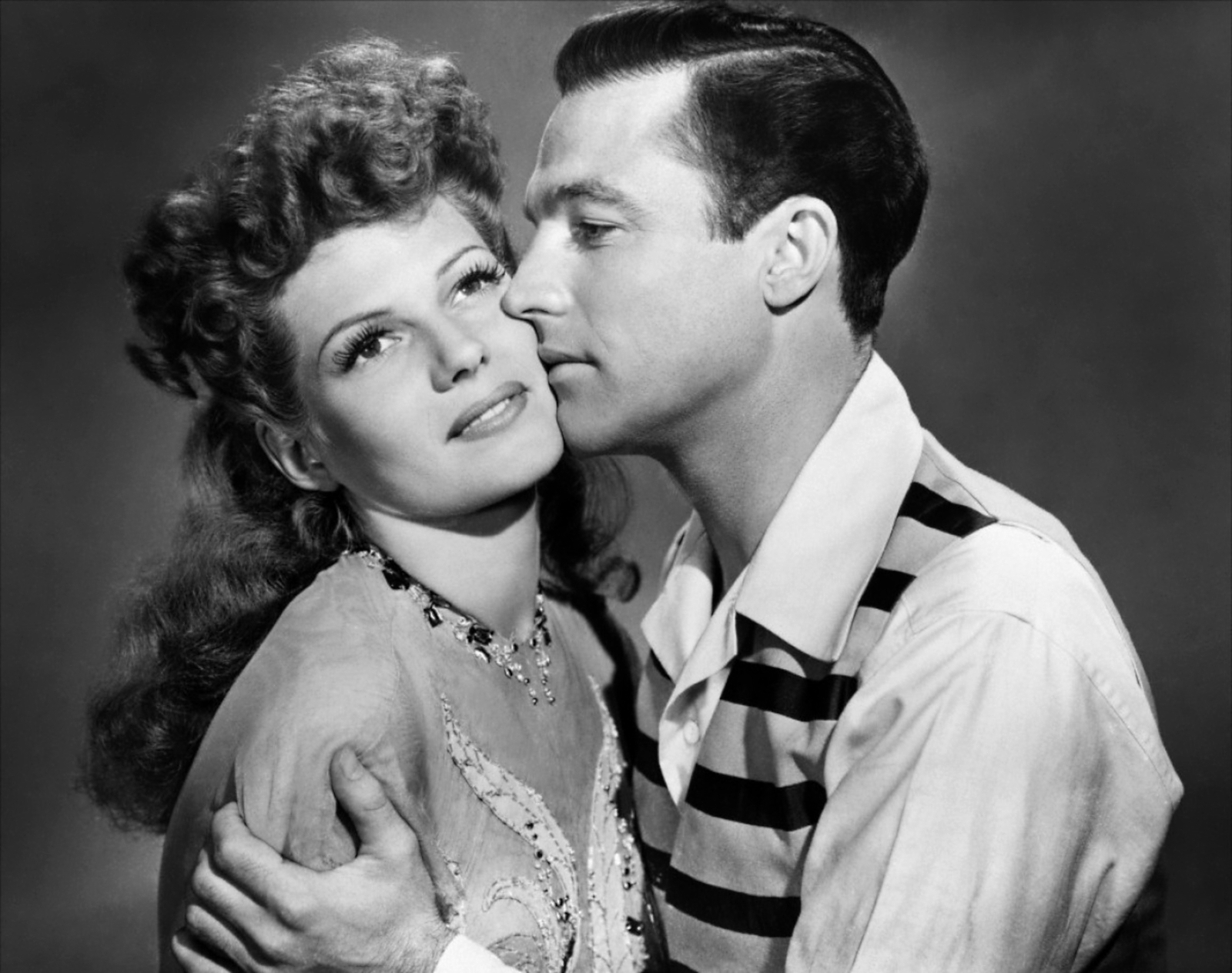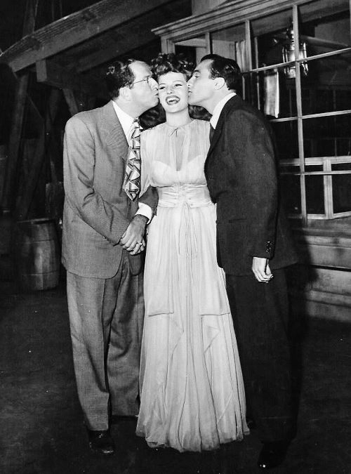 Shown right of center: Phil Silvers; second from right: Rita Hayworth; far right: Gene Kelly