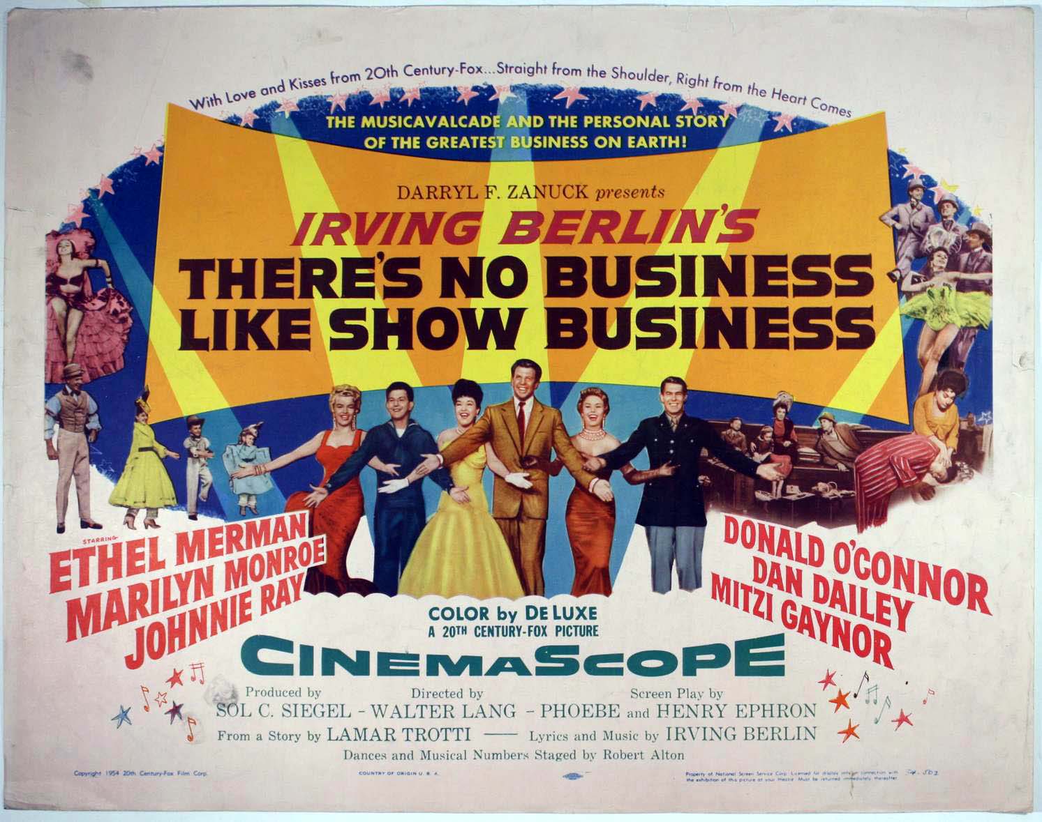 When thinking about quintessential musicals, one that will always come to mind is There’s No Business Like Show Business. It is everything that a musical should be; big, bold, bright and beautiful with a ton of songs, a lot of dancing, drama, heartbreak, comedy and more. At the time it premiered, it was also the very first picture at 20th Century Fox to be filmed in CinemaScope and compared to earlier efforts from the studio, just seemed all that much bigger than the rest. Another thing that the film could boast about was having an all-star cast to help it along with Ethel Merman leading the charge, followed by Dan Dailey, Mitzi Gaynor, Donald O’Connor, famous singing star Johnnie Ray and of course, Marilyn Monroe. When the film was first released, Merman was a powerhouse star along with O’Connor but more than likely you went to see the film because of Monroe who was just coming into her own at the time with a few hits under her belt. Sixty plus years later, most people would more than likely watch this film to see Monroe with little idea who the rest of the actors in the movie are, which is a bit of a shame but is also just the way things work as time passes by.