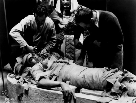1932: Zita Johann (1904-1993) faints into the arms of David Manners in a scene from the film ‘The Mummy’, (aka ‘Cagliostro’, ‘Im-Ho-Tep’ or ‘King of the Dead), directed by Karl Freund. (Photo by General Photographic Agency/Getty Images)