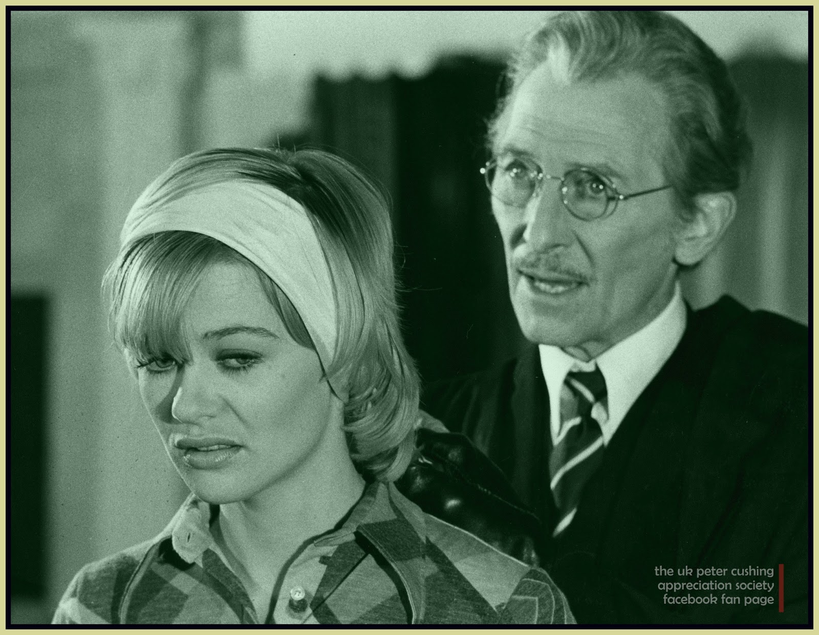Though the film is a little paint by numbers, director and co-writer Jimmy Sangster, along with Michael Syson, manages to create a solid little thriller with a few scares along the way and enough suspense to keep one fixated upon Peggy’s travails. It is not the first time that Hammer has made a film with a plot similar to this, at least when it comes to the leading lady in question, but it was good to see them throw in something a little different with the design to kill off Carmichael as played by Peter Cushing. At first, the movie has a very strange