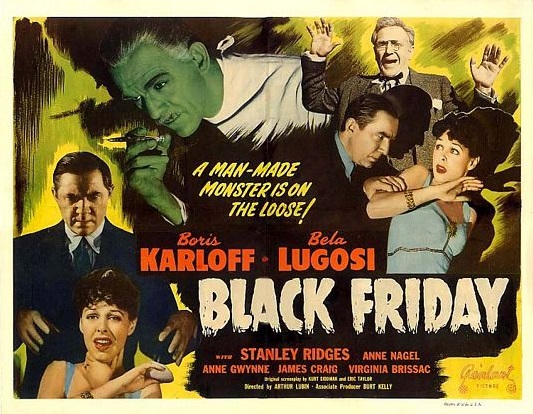 Despite featuring two of horror’s biggest icons in Boris Karloff and Bela Lugosi and being marketed as such, Black Friday features very little horror, if any. The story concerns Dr. Ernest Sovac as played by Boris Karloff whose friend Professor Kingsley is hit by a car while crossing the street. During said collision, another man was injured who just so happens to be a