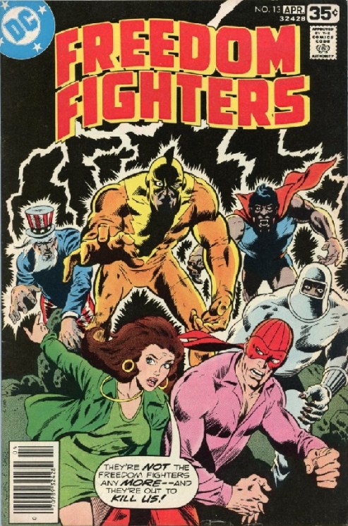 The Freedom Fighters, having broken Doll Man out of prison shortly before he would have been cleared of the murder charges against him, are still on the run, though it comes to a halt when they encounter their missing team member, Black Condor. While they are happy to see him at first, they soon realise that there is something wrong with the man, especially when he attacks them. Once again the team is thrust into action, though it is no ordinary villain they face, but one of their own. Bob Rozakis takes the reins once more and throws the team into a situation that will push them to their limits and not just physically, but mentally. For the entirety of the series, the team has been tested, more than most and it is starting to wear on them. Accused of crimes they did not commit, committing crimes to prove their innocence and save innocents, hunted and hounded and pursued so much that they simply do not know what to do at this point. Rozakis has filled this series with so much tension that it sometimes becomes unbearable, but it is a good thing as well as it keeps the readers coming back issue after issue, hoping against hope that the current book will be the one that will find the team free and clear and recognised as the heroes that they are. Aside from the battle which finds more of the team transformed into the zombie-like creature that the Black Condor has become and with only Firebrand standing against him, the story also delves into the past of the Black Condor, giving readers his origin story which is absolutely fantastic in every meaning of the word. Much like Tarzan, Black Condor found himself orphaned at a very young age and raised by a giant condor in place of apes, learning how to fly after a time and then taken in by a man named Pierre who would soon die shortly after, thereby transitioning to a political career on Earth-X. It is a fascinating tale and adds some depth to one of the characters whom readers knew very little about previous to this. The one good thing about this book is that it does in fact have a happy ending, or at least as good as these particular heroes have had as of late as they find themselves all together again, free of Homilus’ influence, though still hunted by a world that seemingly will not give them a break. At the end of the day, a great story with incredible artwork that begins with a bang and finishes both on a happy note and a solemn one.