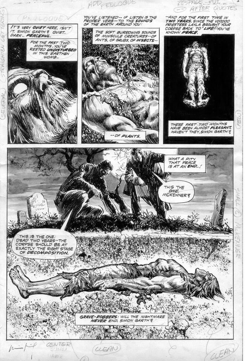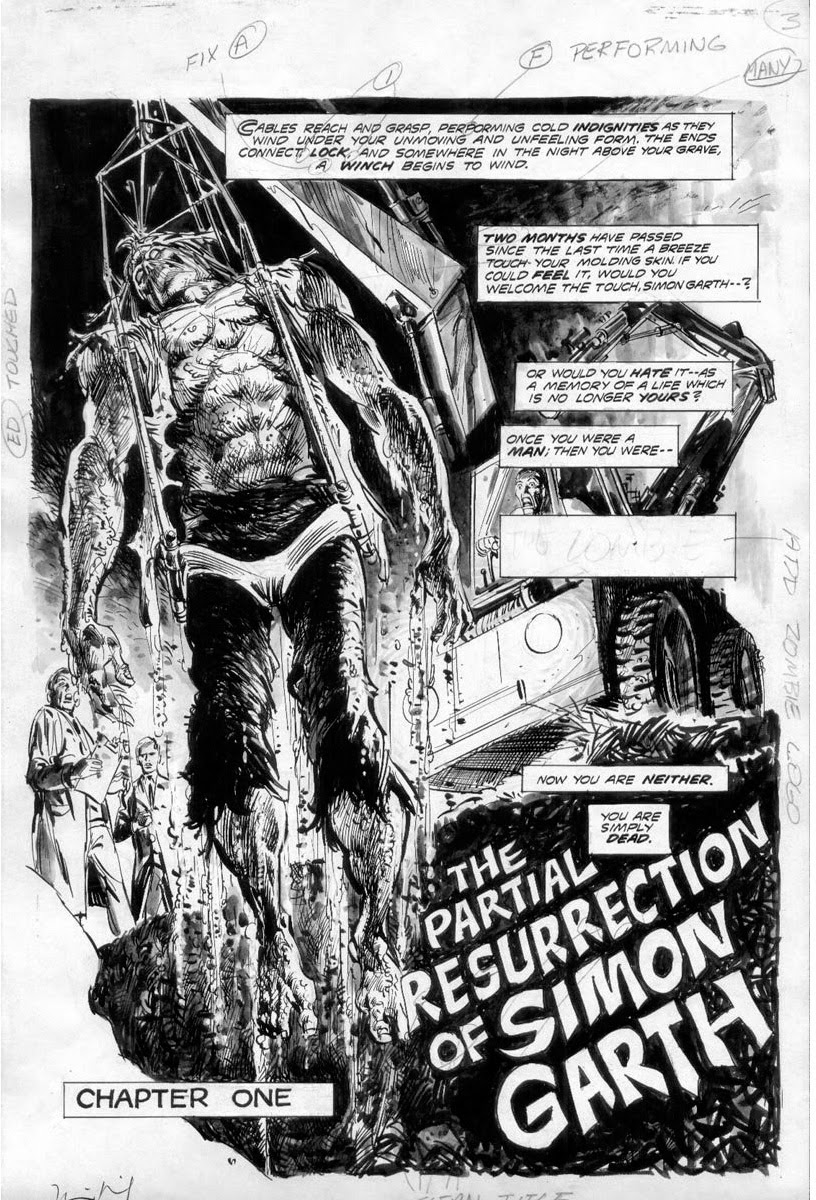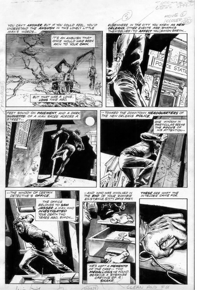 Brother Voodoo is at home resting as he entertains a visitor, the woman Loralee whom he rescued in the sixth issue of this very title, when he receives a message which essentially makes him flee from his own home and get on a plane to Haiti as fast as he can. It was a simple message, but one that tells him the dead walk again and he is needed – a plea that he cannot ignore. Written by none other than Doug Moench and drawn by Tony DeZuniga, they create a fast-paced adventure that finds their hero facing a horde of zombies called up by a power-hungry voodoo priest, one who has skill, but not as much as he would like. So it is that he summons Papa Jambo from the earth, the man who trained Brother Voodoo and it tears at Jericho Drumm’s heart to see his mentor defiled as such, not to mention all the other poor souls raised against their will. With the help of his deceased brother Daniel whose soul resides within his body, Brother Voodoo does what he does best and eventually overcomes, but not without a little casualty along the way. There are three additional stories featured, the first starring a doctor who gets his just rewards for arranging his boss’s death while the second finds karma strike down a cruel judge and his perverse sister. Finally the third and final tale finds a couple of grave robbers get into some business that is far more than they bargained for. The one thing that this book did not have was a Simon Garth story, something that was promised for this issue but was not present due to circumstances beyond Marvel’s control. In an opening blurb to the issue, it was revealed that originally there was to be yet another tale featuring everyone’s favourite zombie but thanks to an errant mistake with the mail, some of the pages of said story ended up in Guam. Reassuring fans that the tale would be published in the next book, all seemed right in the world. As some readers and collectors might know, there never was a next book because the title was cancelled and as it stood, the death Garth died in the ninth issue of the title would be, for all intents and purposes, his actual death. In a way, that worked out perfectly because it ended the tale of Simon Garth on a strong note and his story had a beginning, middle and an end where so many others do not. Be that as it may, those pages for the unpublished issue still exist and why Marvel has not released them out into the wild in published form for those fans of the character is a mystery. Thanks to The Bronze Age of Blogs, some of those pages are available to see down below. As for this issue, while it did not live up to the nine issues published previously; it was still a lot of fun and featured a lot of zombie action by many great creators.