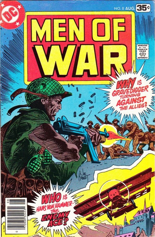 Ulysses Hazard, the man with the code name Gravedigger, is on a mission, but it is unlike any mission that he has had so far for this time it is against an ally, specifically the British. What is it though that could warrant such an assignment? What could be of such importance that Hazard would undertake such a duty against those who should be a friend? With multiple flashbacks by writer Roger McKenzie and artist Dick Ayers, the reader is treated to scenes where the German posing as the murdered British officer Major Birch, is ready to put his plan into action and it just so happens to involve Hazard and a bit of brainwashing. By the end of the story, one that is filled with suspense and action from beginning to end, Hazard is not the man that readers have come to know and admire, but a Nazi agent though he is unaware of it. The cliff-hanger alone makes reading the next issue a must as it is both unexpected and incredibly intriguing. The second story featured in this issue is claimed by The Bloody Red Baron, Germany’s own Enemy Ace. Having just received some news that strikes a chord within him, that being his father now on his deathbed, Hans Von Hammer is ready to rush home so that he might say goodbye to the man who taught him about honour and life, to not only the man he admires himself but to the man who raised him. Like all things in life, the doing of something in principle is always easier than in reality and as he makes his way through the skies, he encounters the enemy as they are about to take down a zeppelin. Though he is worried he may not make it home in time, duty calls and Von Hammer can do nothing but. The battle is fast and he makes short work of those who oppose him, all but one whose guns have jammed or run out of ammo. Not willing to shoot down a defenceless man, enemy or not, Von Hammer is willing to let him go until one of his countrymen take it upon themselves to do that which the Baron would not. Robert Kanigher who writes this tale gives his hero a dilemma – does he continue on his way to his destination or does he now go against his ally who has been shown to have no honour, thus postponing his trip even further. It leaves off at that moment and the reader can see how it tears at the flier, to be continued in the next issue. Altogether, this was a strong book, one filled with unexpected twists and turns that made for a very good read.