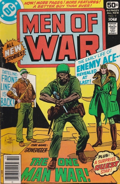 The ninth issue of Men of War packs the issue with three stories, one from each of the features that have been peppered the book over its run and each one of them a cracking good time. It begins with Codename: Gravedigger and after the previous issue’s cliff-hanger, this story begins with Ulysses Hazard in front of a firing squad, about to be executed. As it turns out, it is all a ruse to flush out the German saboteur and that comes to light after Hazard is stopped in his tracks aboard the barge he boarded earlier in order to kill Winston Churchill. As it turns out, Churchill is not who he seems, but the one and only Unknown Soldier in disguise and he disables Hazard after a little back and forth after which Hazard lands in an asylum so that the mind control drugs he was dosed with might wear off. Eventually, everything turns out for the best and the Nazi agent lies dead, his schemes finally at an end and Hazard back to normal. Robert Kanigher and Howard Chaykin continue with the second part of their Enemy Ace epic which finds the German pilot trying to make his way home in order to see his father before he dies. At first, he has a little run-in with another German pilot whom he vows to battle the following day and soon, he is finally home. All seems well aside from the fact that his father’s life is coming to its end, but it is not long before it is shattered and his father is killed by enemy fire, a French pilot who must have recognized the Baron’s crimson Fokker and his father paying for that recognition. Of course, the Enemy Ace vows revenge. In the final tale of the book, Cary Burkett takes reporter Wayne Clifford back to the frontlines once again, this time to North Africa where it all seems a bit dull and Clifford thinking he might have made a mistake. He realizes that just like back in England if he greases the wheels a little and reports on something that is not the actual truth, he might see some more action, but in refusing to do so, he ends up on the sidelines. Like every part of the war though, one can never predict just exactly what will happen and those sidelines that Clifford is sitting on ends up being the very centre of a battle and those wheels that needed greasing end up hiding under a tub in the middle of a desert. Three fantastic tales by three great creative teams with all of them a very different, yet exciting read with each writer and artist at the top of their game.