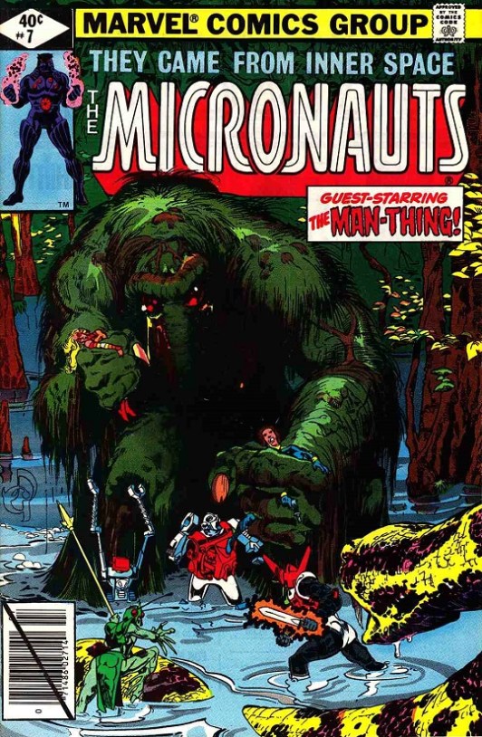 Currently hiding out in the Florida Everglades, the Micronauts have little to do except monitor the local newscasts to see who it is that might still be after them and to console young Steve Coffin who is grieving his father. Unbeknownst to Steve, his father Ray who had made it to the Microverse and was rescued by Time Traveler, has been offered the chance to become a hero, though it is left at that while other plots are also moved forward by writer Bill Mantlo. While things might seem calm, a monster slowly shuffles its way towards the cabin, attracted by the emotions that Steve currently exhibits and soon, Steve and the crew of the Endeavor find themselves in a battle with none other than Man-Thing. Due to Man-Thing’s appearance, everything that Steve might have been feeling turns to fear and whatever knows fear, burns at the Man-Thing’s touch. Michael Golden, who continues to illustrate this book, turning Mantlo’s scripts into works of art, makes the battle between the Micronauts and the muck monster something to marvel at and while they might seem greatly outmatched, they manage to give him pause, at least for a few moments. It is only when Steve works up a little courage that things manage to turn around. Back on Homeworld, Slug and Prince Argon have arrived at a rebel stronghold looking for shelter while Baron Karza has found an opportunity to not only do away with Commander Rann and the rest of the Micronauts, but to possibly conquer another world, that of the planet Earth. Making this a reality is Dr. Prometheus, the mad scientist who now finds himself in the Microverse and at the mercy of Karza. Overall, the book continues to deliver in the best possible way with a truly exciting story that weaves multiple plot threads into an ongoing tale of rebellion and heroism and artwork that draws the reader into this world upon the page. Mantlo also provides a look at the thousand year slumber that Rann took while him and his ship and his faithful companion Biotron took investigating the universe, a trip that gives the man nightmares, but tells of a man who is a hero, sacrificing himself for the betterment of his people. Mantlo and Golden deliver a nice bit of history and characterisation that will hopefully lead to more of the Micronauts’ various pasts coming to light further on in the series.