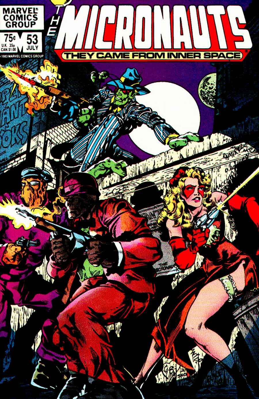 Despite not being a king anymore, he is going to be a father to one and so Acroyear is given new armour along with the bonus of the brand on his forehead which labelled him a traitor being removed. It is all a painful process and the Micronauts wonder just how it is that he is able to endure it, but as Bill Mantlo states in the book, Acroyear was a king and shall always be as such. As it is, the Micronauts must leave the Acroyear people and once aboard Bioship, Marionette once again states that they must go after Baron Karza despite the odds being more than overwhelming. It seems nothing will dissuade her and she then lashes out at Rann whom she thinks is doing nothing, but after breaking in his door and seeing him floating in mid-air, she is told by Fireflyte that he is trying to gain access to the Enigma Force, the one thing which might be able to defeat Karza once again. After a few moments of clarity, it is decided that they are not going to be able to do things on their own and that to stage a rebellion, they need rebels and the one place where there may still be some is on the prison planet, those that ended up there in the first place because of Baron Karza. Though some may have thought that the Micronauts were headed back to Earth given the cover of this book, Butch Guice who draws it all incredibly well and author Mantlo throw a curveball into the mix, for when the Micronauts arrive at their destination, the surroundings resemble something out of an old gangster movie, not that they know what that is. While it is all somewhat interesting and not at all a bad read, it feels like a bit of a misstep by the creative team to introduce a bit of the ridiculous into the proceedings as for the last number of issues, the book has been packed with some truly epic science-fiction drama. Trying to lighten the mood is not a bad thing, but introducing a planet of prisoners pretending to be old-timey gangsters is not what the book called for, instead a continuation of the Micronauts quest to find some serious allies to defeat their greatest enemy would have been more in line with what readers would more than likely would have enjoyed. It was entertaining and will be intriguing to see where it goes, but it will be nice to see the book get back on track without any silly excursions driving it off course.