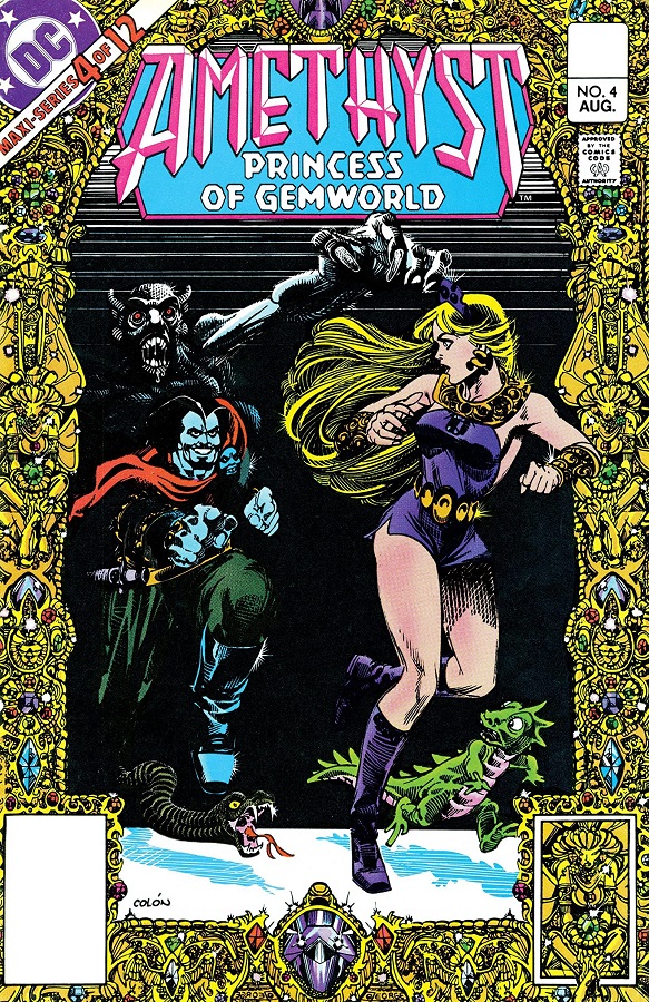 In the last issue, Granch went off to rescue his brothers and sisters from the Dark Dimension while Citrina’s astral-self was captured and made a prisoner by Dark Opal, thereby setting a trap for the young Amethyst. Unsurprisingly, when Amethyst arrives in Gemworld she finds the strangely comatose Citrina and tries to help, her inexperience not recognizing that there could be some danger in doing so. Such as it is though, Amethyst arrives in Dark Opal’s castle in front of the very man himself and then finds herself on the defensive as he means to put an end to her before she comes fully into her power. A battle is not what Amy had expected to find herself in once arriving at Gemworld and now it is essentially do or die as the villain looks to press his advantage, eliminating both Amethyst and Citrina and the last of the opposition that stands before him. Like all good stories, Dan Mishkin and Gary Cohn are not going to let that happen though, at least not so early on in the series and when it is all said and done, Amethyst may not have won, but she and Citrina are free and have at the very least dealt a blow to the monarch that he will not soon forget. The authors of this tale also take the time to throw in a little extra for their readers including a sub-plot involving the Emerald princess who must marry Carnelian so that they do not incur the wrath of Dark Opal and thus show fealty as well as that which they started in the last book involving Granch who is trying desperately not to get lost in the Dark Dimension with his siblings. Suffice it to say, things do not play out exactly the way that Granch wanted them too as his lifeline was tampered with and now with his family surrounding him, they mean to take out their anger and frustrations on him in a most violent manner. Cohn and Mishkin also take a look at things back on Earth with Amy’s parents who are worried sick about her and whose father seems like he must be crazy what with him talking about how she vanished into thin air and all. Altogether, this was a book packed with action and excitement, not to mention the incredible artwork of Ernie Colón featured on each and every page.