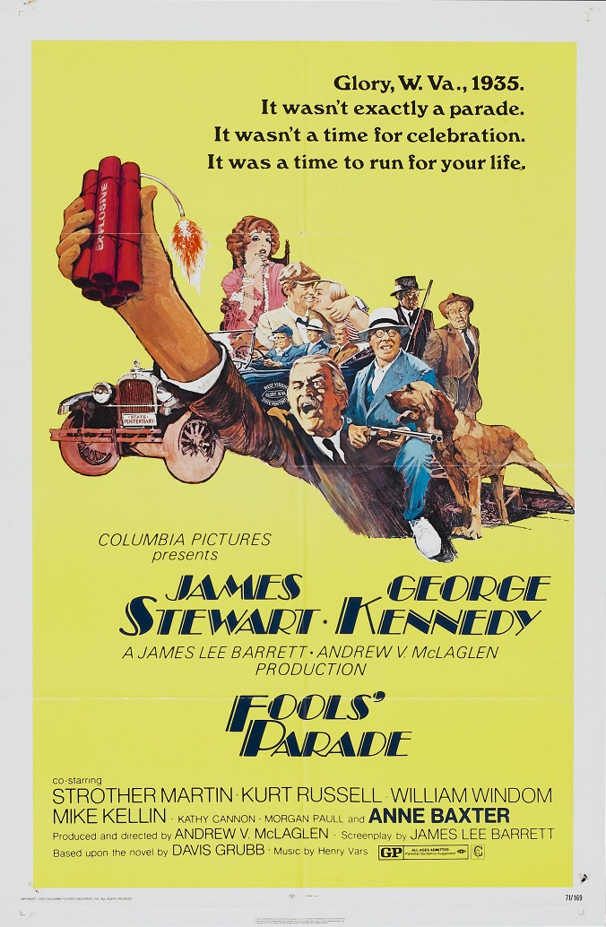 Fool’s Parade is an interesting film more for its cast than its subject matter, starring James Stewart, George Kennedy, Kurt Russell, Strother Martin and an older and unrecognizable Anne Baxter who would play an ageing madam. Seeing a young Russell among these stalwarts of the big screen was a little strange at first but he would fit right in with a good performance of his own, perhaps the young actor gaining a few tips from