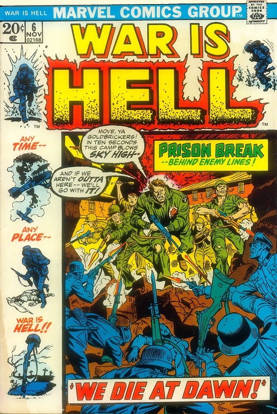 Beginning the book off with a bang is a story called To Die at Dawn!, exciting for the fact that there is nothing quite as good as a prison break when done right. This particular one is a little different from the norm as it takes place during the Second World War and focuses on those prisoners of war comprised of servicemen, both English and American. It is soon learned that Hitler, who is tired of Germany getting bombed by the Allies, has sentenced them all to death when the sun rises and so a desperate plan is put into place to free them. Court-Martial deals with a man who cannot stand the sight of a gun, much less having to carry one. When he and the men he serves with come under fire, he is unable to serve and his commanding officer orders him arrested to await a court martial. As it is, he finds himself conscripted to work at the local field hospital and as they all find themselves under attack once more, he is finally able to prove himself, exonerating his reputation by doing so. Some men get stuck in their ways and find it hard to change their beliefs as seen in the tale called The Last Battle! The man in this story has no taste for war and thinks of himself and those like him as just cannon fodder so that those captains and generals and so forth might collect more medals. Things take a turn when a group of horsemen enter the battle and all four hundred of them are killed to a man in what will come to be known as the Charge of the Light Brigade. The book closes with a final chronicle called Trip Flare about a hill some soldiers clear in Korea and it is one that they do not want the enemy retaking. So it is that one man remains behind to set up some grenades and flares, a fail-safe as it were to discourage the enemy from returning and yet things are not always as easy as they might seem and they do indeed return, much to the soldier’s dismay. Four more great tales percolate within these pages with some great artwork and some great writing by various people to make for an excellent package. Nothing like a good war book to entertain when in need of some reading to pass the time.