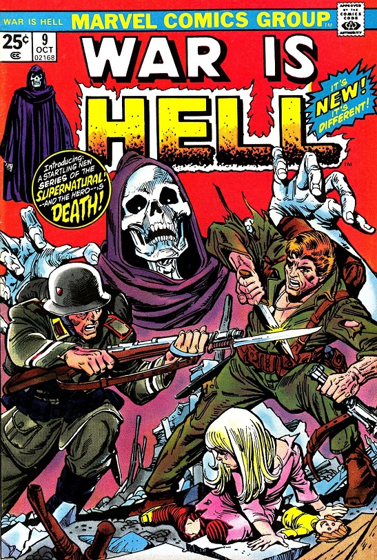 The book and the scene open up with a man named John Kowalski walking amongst horror, bodies strewn everywhere and he is rightfully horrified. He questions why all of these innocent people had to die as a cloaked figure, presumably, Death, stands off to the side. As he surveys his surroundings, he spies an old man who curses him out for being a coward after which he is promptly attacked and knocked unconscious. He flashes back to 1937 when he was busted down and kicked out of the army, guilty of espionage and high treason. Moving to Poland, he begins again, living a life far too ordinary and he hates it and himself. He meets an older man who warns him that Germany is about to attack and Kowalski scoffs at it, preferring to get drunk instead of considering anything that does not pertain to him. So it is the Germans attacked, bombing and killing millions which leads to the present. Scripted by Chris Claremont after being plotted by Tony Isabella and Roy Thomas, the book comes to live up to its name with this first issue which is not a reprint of older material. Drawn by Dick Ayers and Frank Springer, it looks fantastic and delivers both a war story and a good dose of horror too. As it is, Death, who had been sitting quietly on the sidelines, finally speaks up as Kowalski notices him. Things get very interesting as the book progresses at this point, John’s attacker doing so again as they fight to the death with a little girl’s life in the balance as well. Something happens during all of this, more specifically a building falls on top of the two men and Death reveals to John that he is dead, this first conversation does not go as John would like it to. All of this leaves a nagging question in the mind of the reader, making them wonder if Kowalski had been dead all along given that Death appeared during the first pages of the book or if Death had simply been waiting for him. As the book leaves off, John is still dead and now a ghost and yet he remains the star of the title, cursed by the old man he refused to listen to and cursed to die a thousand times over and more before he is finally allowed to rest. A great start to a new serial within the book, giving it new life so to speak that makes readers want to continue onwards.