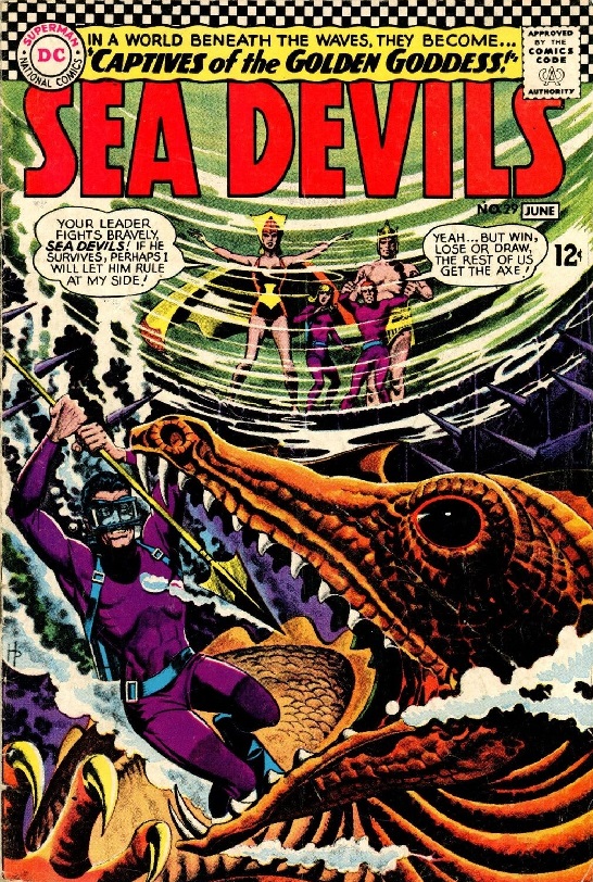 The Sea Devils are off doing their thing when they encounter a monstrous being, essentially making this just another day of the week. This one differs slightly, though, as they and the creature get sucked down a fissure and then into what looks like a flying saucer. Nicky is somehow left behind, dead or alive, it is unknown, and the question is on everyone’s mind. As for the creature, he too is brought aboard the ship and undergoes a startling transformation, turning from monster to man. They are all taken to a fantastic kingdom ruled by a golden goddess and a woman who is called as such, for she is a magnificent sight, both regal and beautiful. She is painted as a villain by Lucas, the man who was turned into a monster, and she also just so happens to be looking for a mate. That lucky man will rule by her side, but only if he can defeat Valdo, a deadly sea creature. So it is that the Goddess has set her sights upon Dane, and soon a deadly battle takes place beneath the waves between the man and Valdo. There is a moment when it seems Dane might lose, but as the leader of the Devils, one should never count him out, and he perseveres. Howard Purcell and Sheldon Moldoff continue to guide this title through many fantastical adventures, with this latest example being just one of them. They also tend to do a pretty good job of it, and it was quite a lot of fun. Some of the elements within have appeared before, so it did feel a bit repetitive, but overall, it is a solid representation of what this title is all about. The best thing about it all is seeing Nicky save the day in the end, as he does not always get the spotlight, which is more often reserved for Dane. To his credit, Dane does do a lot of the heavy lifting in this issue as the Golden Goddess has set her sights upon him, but she is also wise to his plans of escape, and so as the book moves towards its conclusion, things get a little harder for the leader of the Sea Devils. There is an interesting twist at the end of the tale, one that was a little out of the blue, which made it all the better, and while there is probably no hope for a sequel to this tale, it would be interesting to see whether it is needed or not. Featuring some decent writing, if not more than a little familiar, and some great artwork, this was a reasonably good issue.